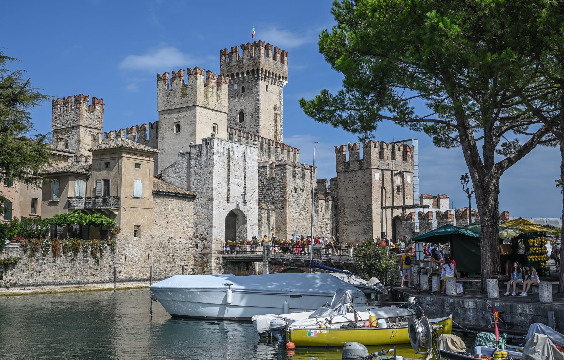 Da schau sich doch mal einer diese Menschenmassen an, die da über die Brücke nach Sirmione einfallen. Das hat aber auch seinen Grund, denn Sirmione ist wunderschön. Erinnert ein wenig an Disneyland. Hier gibt es riesige Portionen Eis zu essen und es gibt viele Restaurants und eine mittelalterliche Atmosphäre. Verlässt man die Altstadt, so wird es schon nach ein paar hundert Metern ruhiger und man findet viele kleine verträumte Plätze. Es wäre sicher eine gute Idee, sich in einem der schönen Hotels auf dieser Halbinsel einzumieten. Dann hätte man die kleine Halbinsel fast für sich alleine, wenn die Tagestouristen wieder in ihren Reisebussen sitzen.