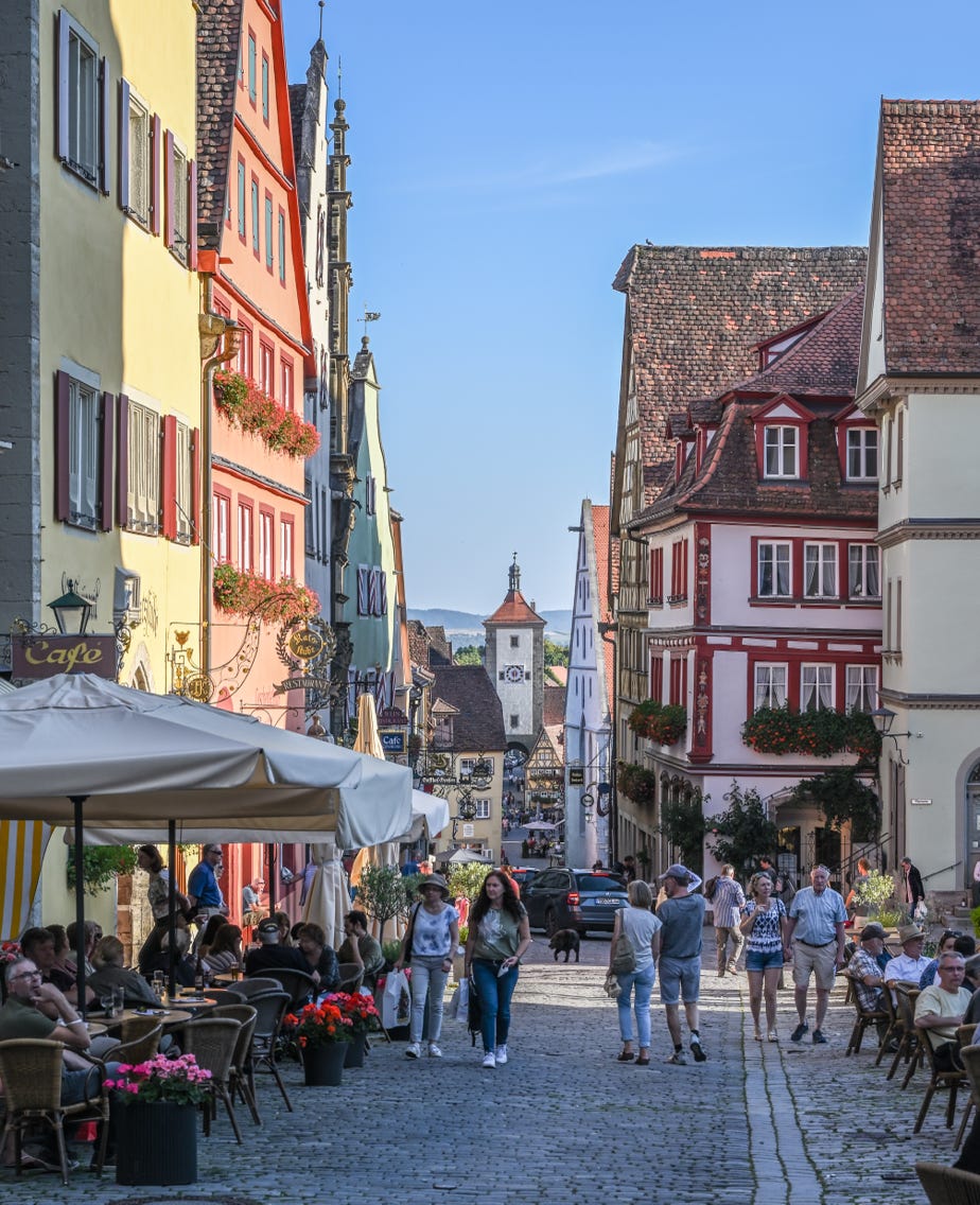 Das letze Highlight auf dieser Reise war dann die Zwischenstation auf der Heimreise: Rothenburg ob der Tauber. Und hier hatte Corona auch endlich mal etwas Positives: Wo sich sonst die Chinesen auf ihren kleinen Füssen herumtrampeln, da herrschte fast gähnende Leere. Eine wunderschöne Stadt, in der alle Touristen ein glückseliges Lächeln im Gesicht haben, was sicherlich an den vielen Schoppen Wein liegt, die hier so über den Tresen gehen.