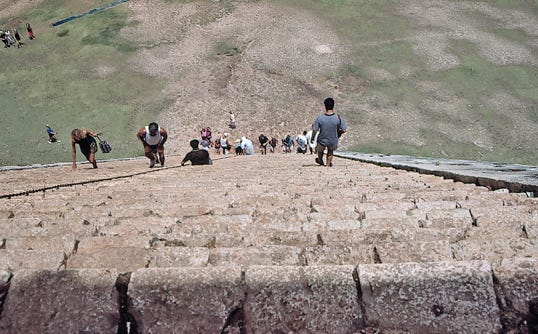 Schwindelfreiheit vorausgesetzt, konnte man damals auch noch auf die Pyramiden hinauf klettern. Soviel ich weiss, ist es heutzutage verboten.
