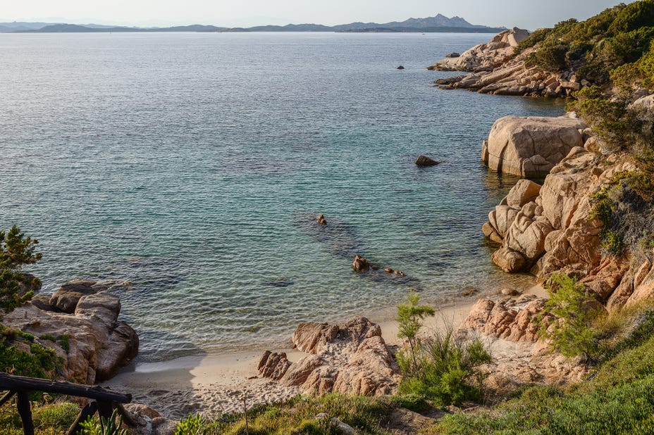 Von Palau aus erreicht man die Insel Madalena. Die „Panoramastrasse“ ist eher ein Witz. Fährt man aber vorbei am erbärmlichen Tennisplatz des örtlichen Tennis Clubs, dann kann man auf der Nachbarinsel Isola Caprera wunderschöne Wanderungen zu einsamen Stränden unternehmen.