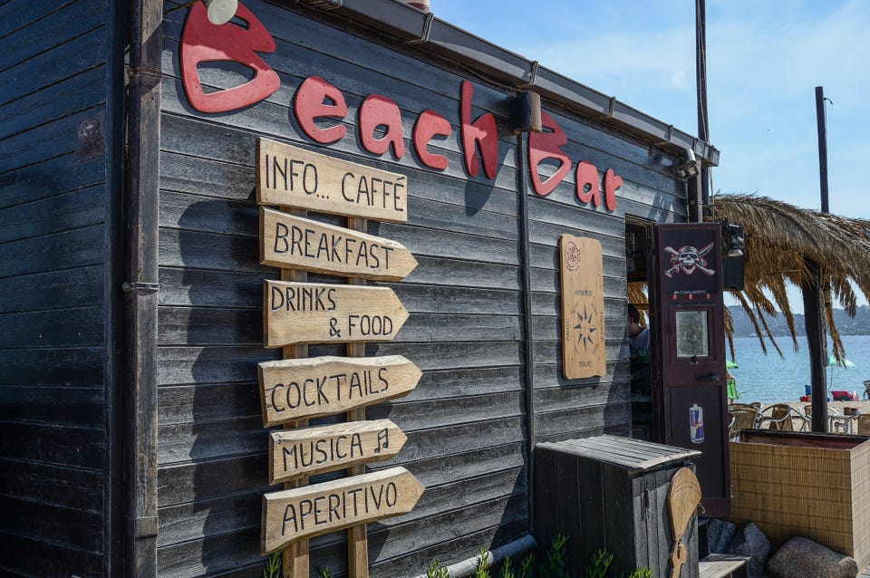 Der Ort Baja Sardinia bietet neben einer kleinen Plaza auch eine Strandpromenade mit einer ausreichenden Anzahl von Restaurants. Am Phi Beach startet jeden Abend ab 17 Uhr die Party. Einladend fand ich die Bar mit ihren Lounge Betten, auf denen sich ein paar angetrunkene junge Mädels räkelten, allerdings nicht besonders. Der „Beach“ ähnelt eher einer Slipanlage für Kleine Boote.