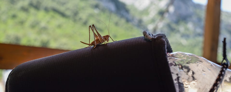 Die Berichte über eine Heuschreckenplage, die mich kurz vor meiner Abreise erreichte, machte mir keine Angst. Tatsächlich habe ich auch nur eine einzige Heuschrecke gesehen, die es sich auf meinem Wandergürtel gemütlich machte und kaum vertreiben liess.
