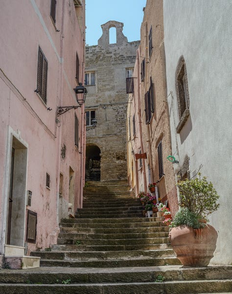 Dann schon lieber nach Castelsardo. Dieser hübsche Ort mit seiner Altstadt und der Burg, ist gar nicht so überlaufen, wie ich dachte. Berühmt ist Castelsardo für seine Korbflechtkunst, die hier schon seit Jahrhunderten betrieben wird. Also kann man sich auf der Burg uralte Körbe ansehen, was mich jetzt nicht gerade in Ekstase versetzt hat. Ich habe auch so gar nichts mit Körben am Hut.
