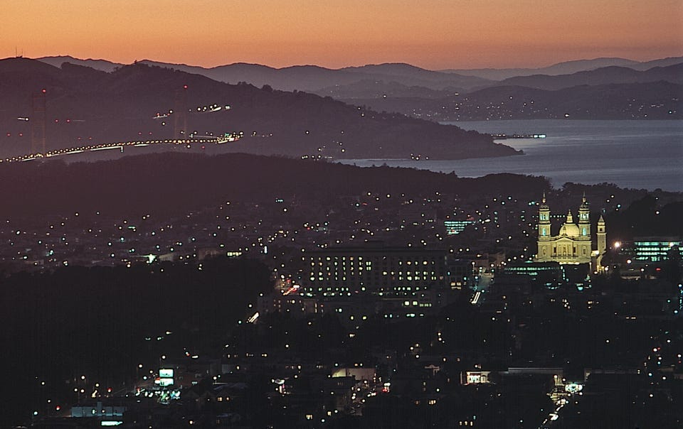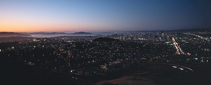 Zwei Plätze gibt es, die man unbedingt bei Sonnenuntergang oder bei Nacht aufsuchen sollte: Den Alamo Square und die Twin Peaks, von wo aus man einen herrlichen Rundblick über die Stadt hat.