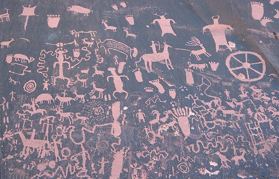 Ein echtes Highlight ist das Monument Valley. Bekannt aus einigen Dutzend Wild West Filmen. Bei meinem Besuch hier, war es leider den ganzen Tag bedeckt und grau in grau. So mußte ich vier Stunden ausharren, ehe die Bewölkung kurz vor Sonnenuntergang doch noch aufriß und ein vernünftiges Fotolicht erzeugte. Wann fällt er? Balanced Rock im Arches National Park. Am Newspaper Rock glaube ich , Bart Simson entdeckt zu haben…