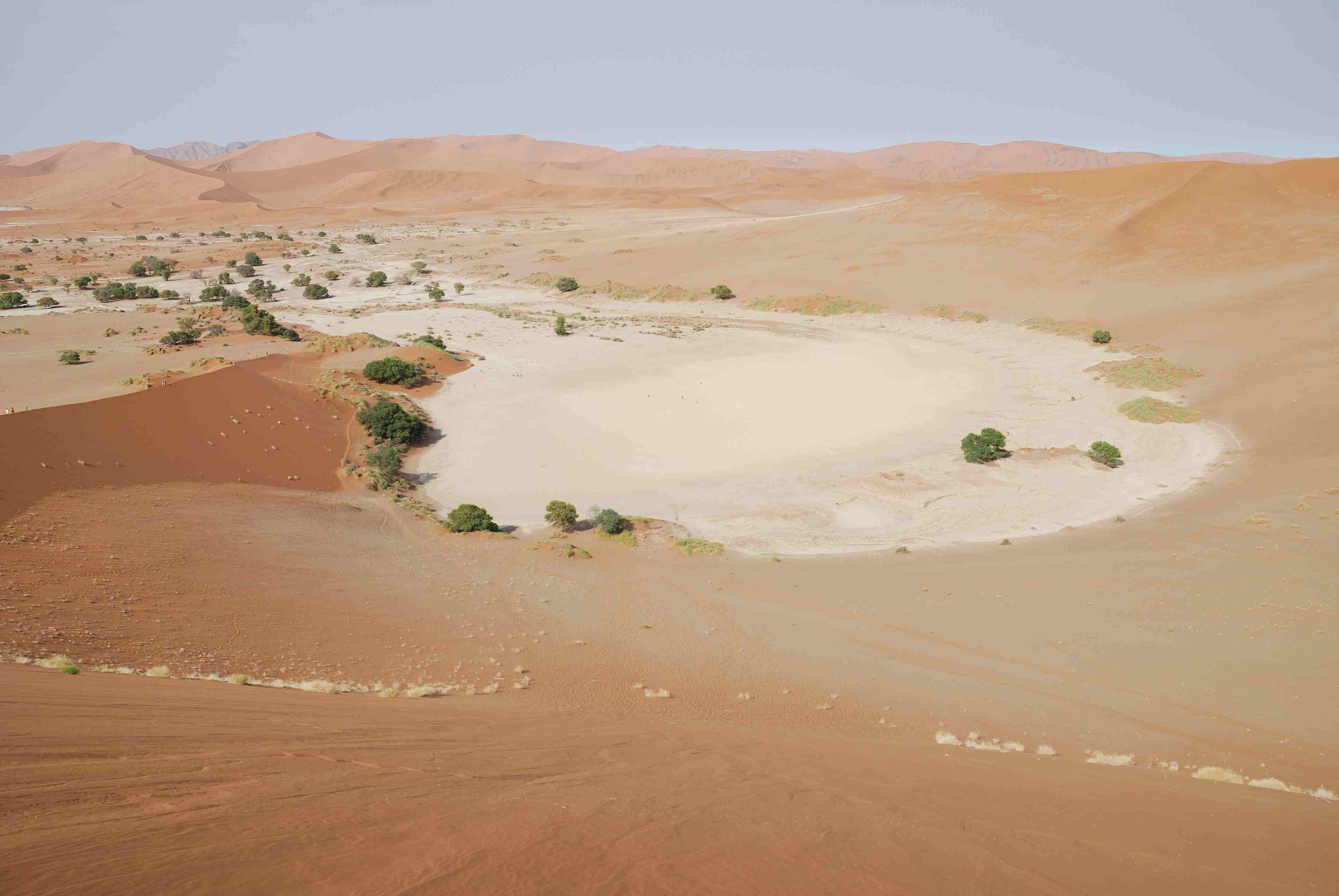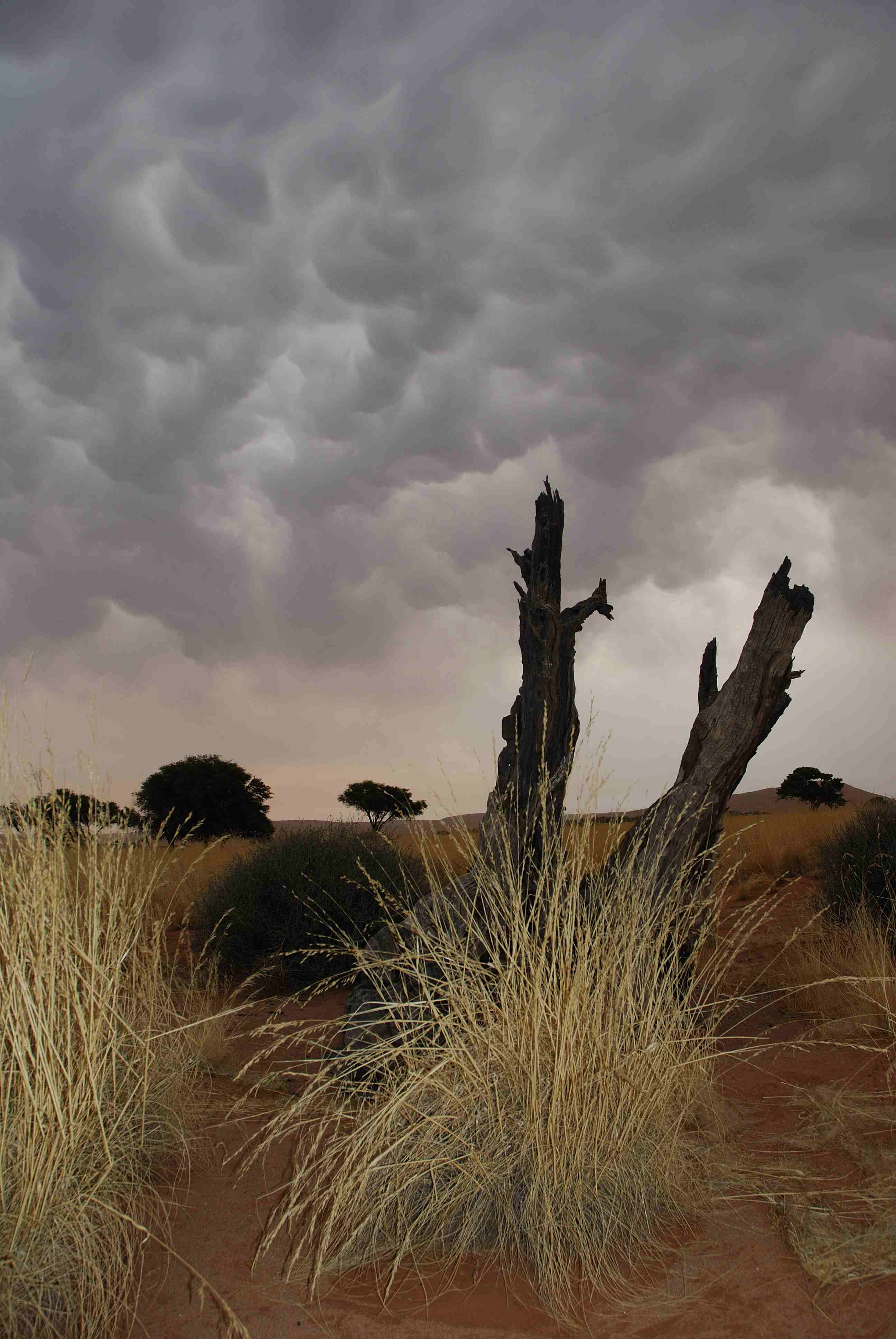 Die Namib-Wüste ist die zweitälteste Wüste der Welt, was das auch immer zu sagen hat. Die Sesriem Lodge ist ein angenehmer Ausgangspunkt für die Erkundung. Schon faszinierend, auf dem Gipfel einer fast 400 Meter hohen Düne zu sitzen und zu staunen. Leider neigen schwäbische Reisegruppen auch in dieser überwältigenden Landschaft dazu, sich über kaputte Kühlschränke und Fußpilzerkrankungen zu unterhalten, anstatt einfach den Ausblick zu genießen. Ballonfahrten oder Wanderungen im Sesriem Canyon sind weitere Aktivitäten hier. Abends kamen dunkle Regenwolken auf und es fielen tatsächlich ein paar Tropfen Regen. Dazu zog auch noch ein Sandsturm auf. | ||||||||||||||||||||||||||||||||||||||||||||||||||||||||||||||||||||||||||||||||||||||||||||||||||||