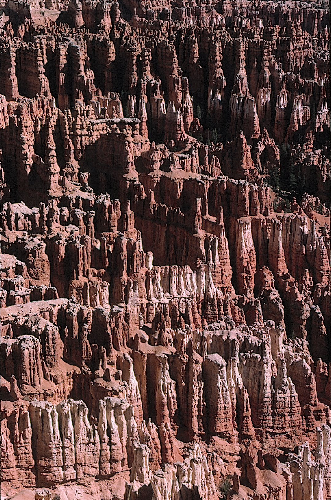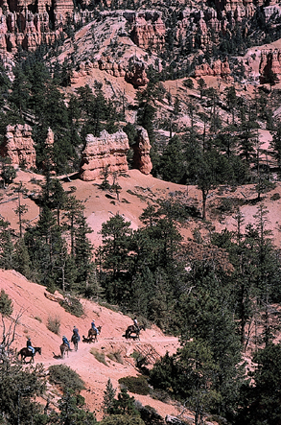 | Es ist September. Auf der Hochebene des Bryce Canyon ist es kalt und die Bäume bekommen langsam die Herbstfärbung. Im nahegelegenen Zion N.P. ist ein Feuer ausgebrochen. Noch am Vortag hatte ich diesen völlig überlaufenen, touristisch völlig durchgeplanten Park besucht. Auch wenn mich die vielen Leute mit ihren Kinderwagen und Gehhilfen etwas gestört haben, das Feuer habe ich deshalb nicht gelegt. Auch der Bryce Canyon Nationalpark ist gut besucht. An den Aussichtspunkten drängen sich busladungen lärmender Touristen, die die Diskussion über das letzte Frühstücksbüfett mehr interessiert, als ein Blick in den Canyon. Aber es gibt eine Möglichkeit, ihnen zu entkommen... | |||||||||||||||||||||||||||||||||||||||||||||||||||||||||||||||||||||||||||||||||||||