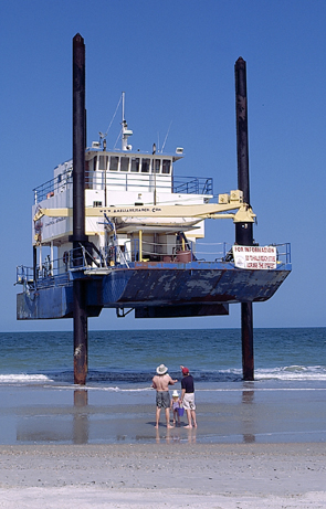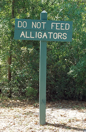 ![]() | Der Süosten der USA, das sind in erster Linie natürlich die Strände von Florida, obwohl die schöneren Strände an der Ostküste in Georgia und South Carolina liegen. Die Strände von Daytona Beach und Co. sind zwar groß, haben aber wenig Charme. Ausserhalb der Frühjahrsferien, wenn hunderttausende von Studenten einfallen, ist hier auch nichts los. Am Strand von Fernandina Beach steht eine seltsame Plattform im Wasser. Was das genau soll, habe ich aber nicht verstanden. Aligatoren gehören zur Landschaft, wie bei uns die Spatzen. Gegen das Füttern hätte ich ja nichts, solange ich nicht sebst die Mahlzeit bin. |