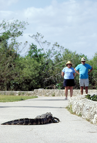 | Der Aligator auf dem Foto oben, ist sicherlich nicht mehr gefährlich. Für die rasenden Trucks ist er immer noch zu langsam. Trotzdem bewegen sich Aligatoren auch an Land sehr flink. Einige Touristen, die sich zu Nahe herangetraut hatten, mussten mächtig Fersengeld geben, um dem agressiven Ali zu entkommen. Sind eben doch keine zahmen Haustiere. Der Everglades Nationalpark ist auch ein Paradies für Vogelkundler. Bewaffnet mit Kamera und Teleobjektiv, sind sie immer auf der Suche nach einer neuen Spezies und schrecken auch nicht davor zurück, andere Fotografen vom vermeintlich besseren Blickwinkel wegzudrängeln. Am Ende der Straße durch den Everglades N.P. liegt der kleine Ort Flamingo, der aber ebenfalls völlig ausgestorben schien. Der Campingplatz fast leer, das Motel geschlossen. | ||||||||||||||||||||||||||||||||||||||||||||||||||||||||||||||||||||||||||||||||||