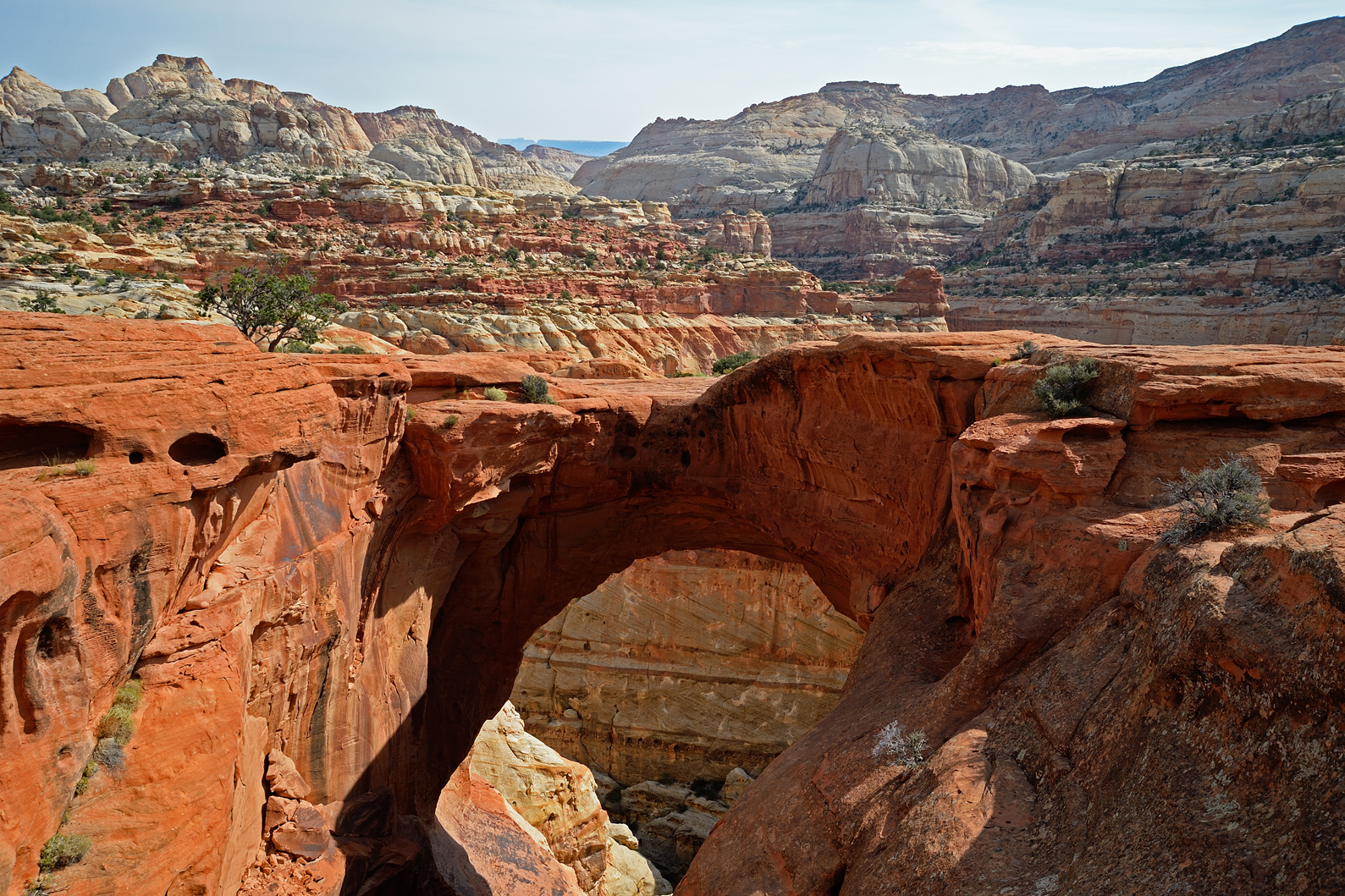 Auf dem wunderschönen Highway 12 erreicht man von Bryce Canyon aus den Capitol Reef N.P.. Eine sehr anstrengende, aber auch lohnenswerte Wanderung führt hier zur Cassidy Bridge. Hier hielt sich der alte Ganove Butch Cassidy längere Zeit versteckt. Schade. Es hätte so schön sein können, am Sunset Point den Sonnenuntergang zu genießen. Leider neigen Amerikaner dazu, wann immer sie auf ihre Landsleute treffen, zu quatschen und zu quatschen und zu quatschen. Jedem wird die eigene Lebensgeschichte aufgedrängt. Und das in einer Lautstärke die ich beim Anblick eines so grandiosen Naturschauspiels einfach nur für respektlos halte. Sorry, Freunde. Geht doch zum Quatschen in die Kneipe. | |||||||||||||||||||||||||||||||||||||||||||||||||||||||||||||||||||||||||||||||||||||||||||||