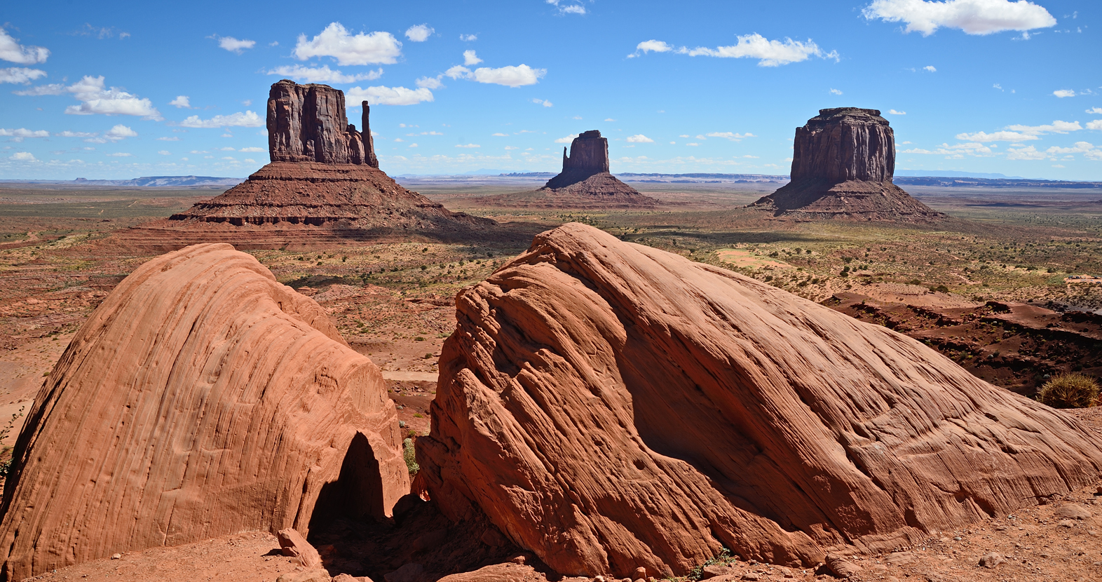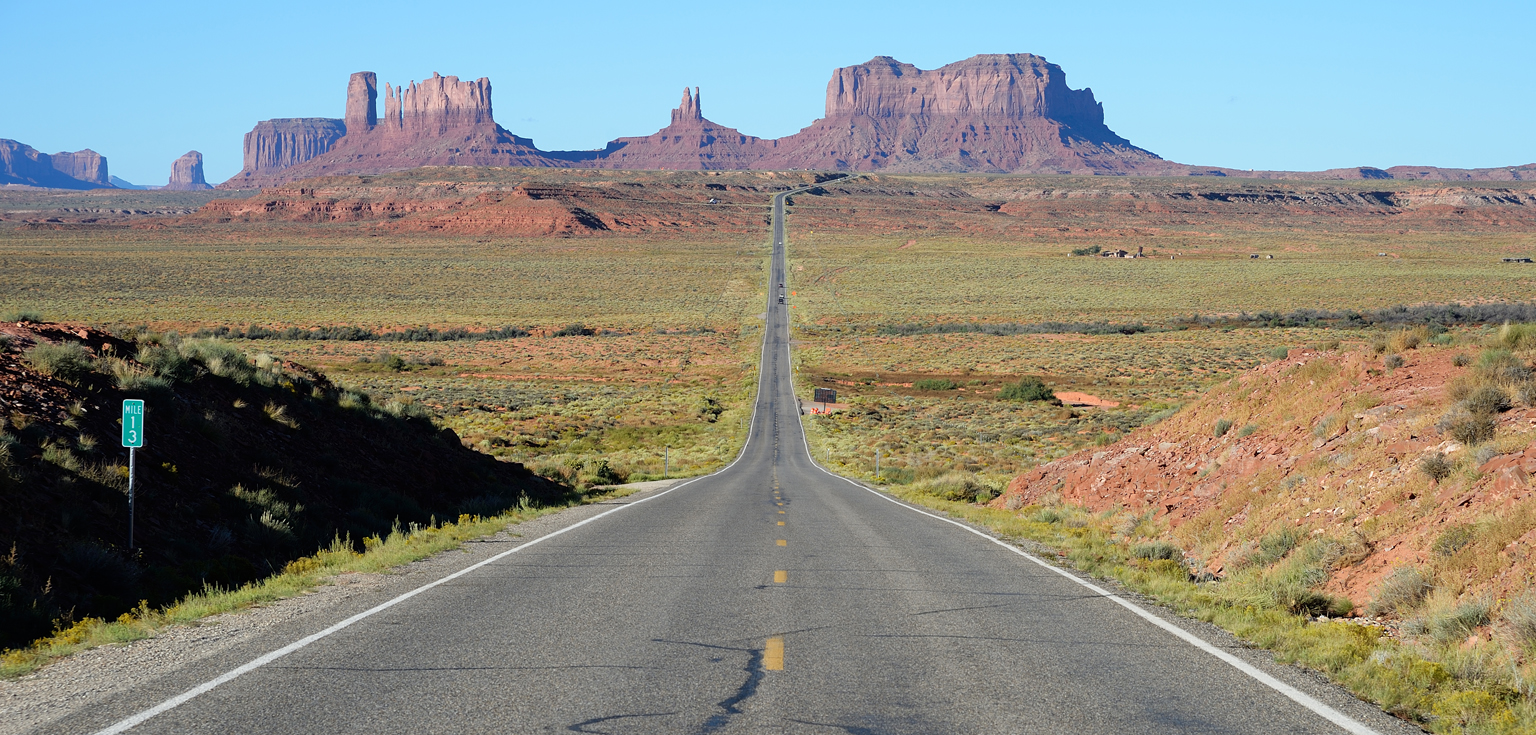 Kurz hinter dem kleinen Kaff Mexican Hat, das seinen Namen von einer an einen Sambrero erinnerde Felsformation hat, erreicht man den Forrest Gump Hill. Hier sprach Forrest Gump die berühmten Worte: "I'm pretty tired. I think I'll go home now.". Entsprechend viele Touristen sitzen hier auf der Straße und lassen sich ablichten. Dass es bei dem nicht unerheblichen Autoverkehr hier noch keine Toten gegeben hat, grenzt an ein Wunder. Gleich hinter dem Forrest Gump Hill erreicht man das legendäre Monument Valley. | |||||||||||||||||||||||||||||||||||||||||||||||||||||||||||||||||||||||||||||||||||||||||||||